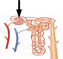الإجابة خطأ لأن السهم يرمز الي محفظة بومان والتي يتم فيها عملية ترشيح الدم تتم